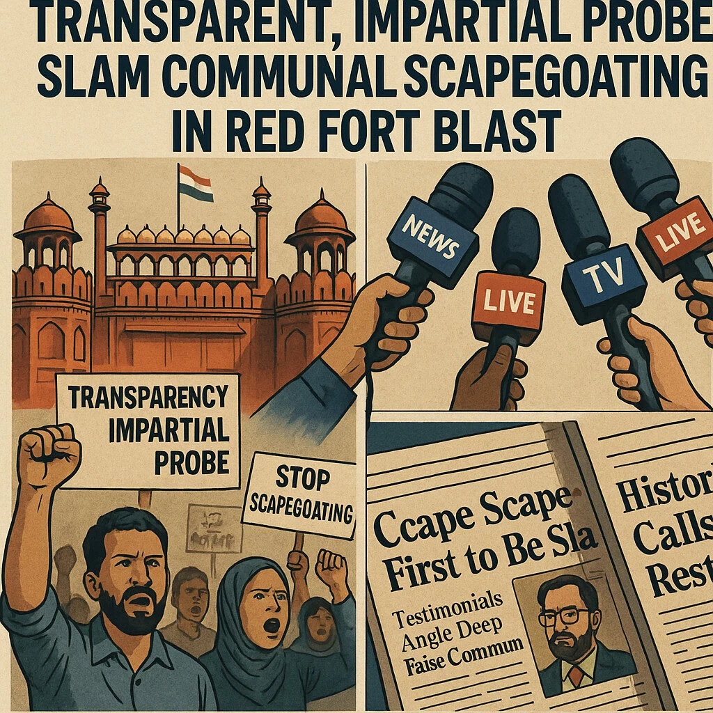 New Delhi: While expressing grief, civil society voices, Muslim organizations, activists, and journalists have called on the authorities to conduct a transparent and impartial probe ,  free from manipulation ,  into the Red Fort blast. They have also slammed sections of the national media for running a communal smear campaign, targeting Muslims, and attempting to scapegoat an entire community even before the facts are established.